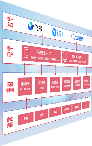 对协作平台提供支持服务,,支持企业应用与协作平台对接,,包含组织同步、、、消息集成、、、、待办集成等。。。支持目前主流的协作平台:钉钉、、、、企微和飞书。。。